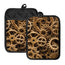 The Steampunk Brass Cogs And Gears Print Pot Holders With Pocket is a simple yet practical addition to any kitchen, designed to keep your hands safe and your cooking experience easier. Made from durable polyester, these pot holders feature a convenient pocket design that provides added protection and comfort when handling hot dishes, lids, or pans.
