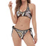 Black And White Mechanic Pattern Print Halter Scoop Tie Side Bikini