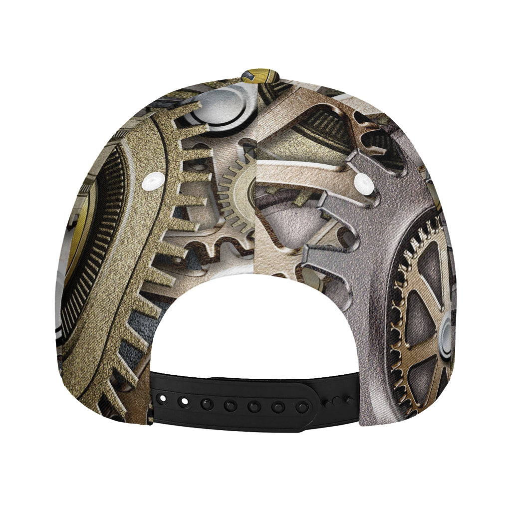 Top off your look with the stylish and functional Steampunk Metallic Gears Print Baseball Cap. Designed for comfort and durability, this baseball cap is the perfect accessory for casual outings, outdoor activities, or simply elevating your everyday style. Its sleek design and practical features make it a wardrobe essential for anyone who values both form and function.