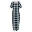 Steel Blue And Black Buffalo Check Print Short Sleeve Long Nightdress