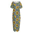 Stripe Sunflower Pattern Print Short Sleeve Long Nightdress
