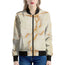 The jacket is equipped with a high-quality, no-snag zipper, making it easy to put on or take off without hassle. Its ribbed collar, cuffs, and waistband provide a snug and flattering fit, accentuating the classic bomber jacket style. This timeless design pairs effortlessly with a variety of outfits, from casual jeans to sporty looks, making it a versatile addition to your wardrobe.