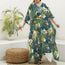 Summer Hawaiian Leaves Pattern Print Silk V-Neck Kaftan Dress