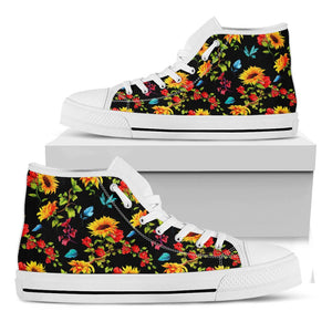Are you looking for unique sneakers? Check our Sunflower Floral Pattern Print White High Top Sneakers on GearFrost. Our sneakers are handcrafted to the highest quality standards and made-to-order for you!