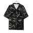 Black Palm Leaf Aloha Pattern Print Men's Short Sleeve Shirt