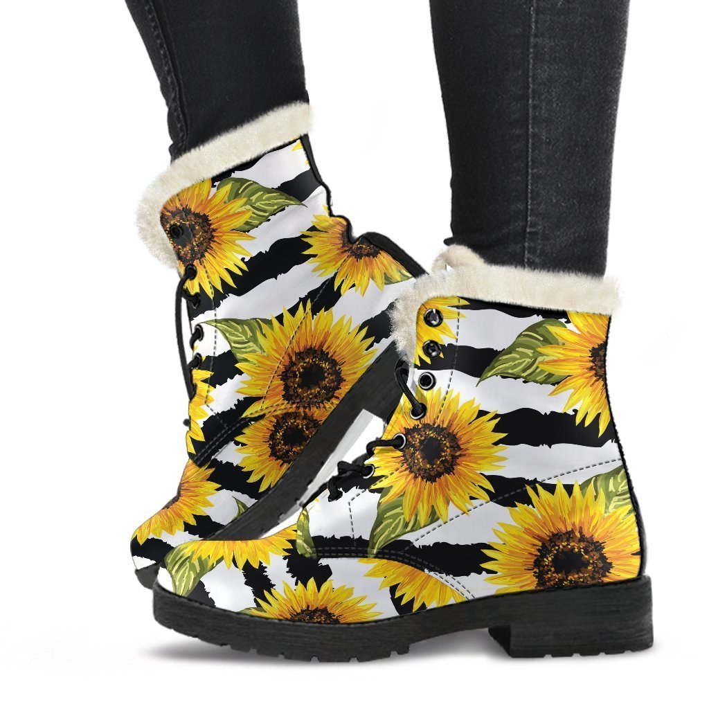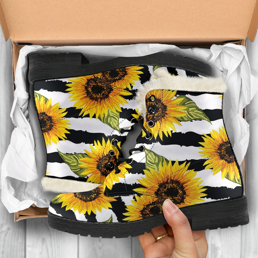 Combine cozy warmth with standout style in the versatile Sunflower Striped Pattern Print Faux Fur Leather Boots. Designed to keep you comfortable without compromising on fashion, these faux fur leather boots are a must-have addition to your footwear collection. Whether you’re braving chilly weather or adding an edgy touch to your outfit, these boots offer the perfect mix of practicality and personality.