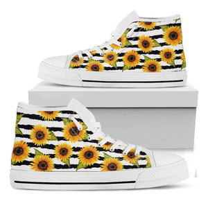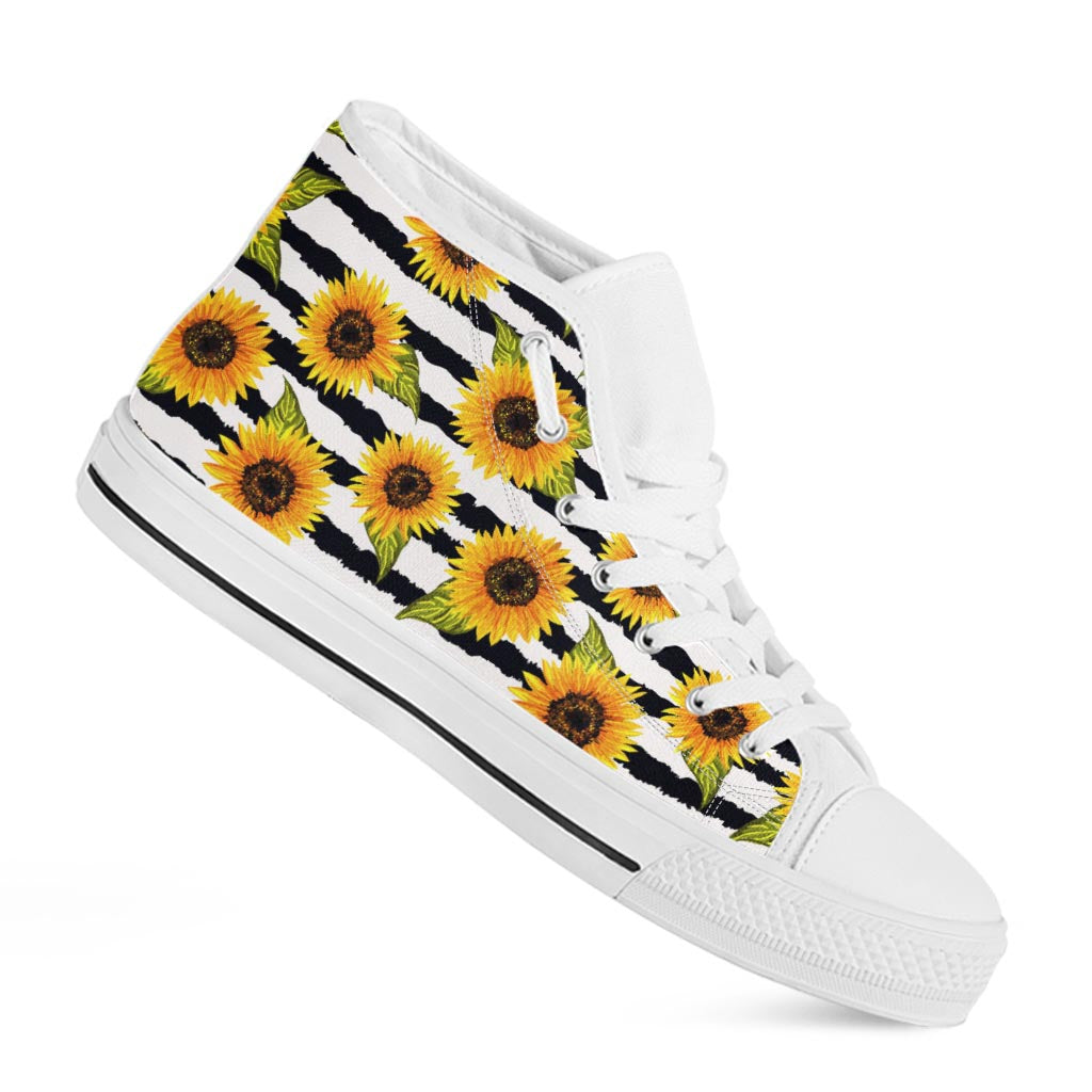 Are you looking for unique sneakers? Check our Sunflower Striped Pattern Print White High Top Sneakers on GearFrost. Our sneakers are handcrafted to the highest quality standards and made-to-order for you!