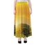 Yellow Watercolor Lily Pattern Print Chiffon Maxi Skirt