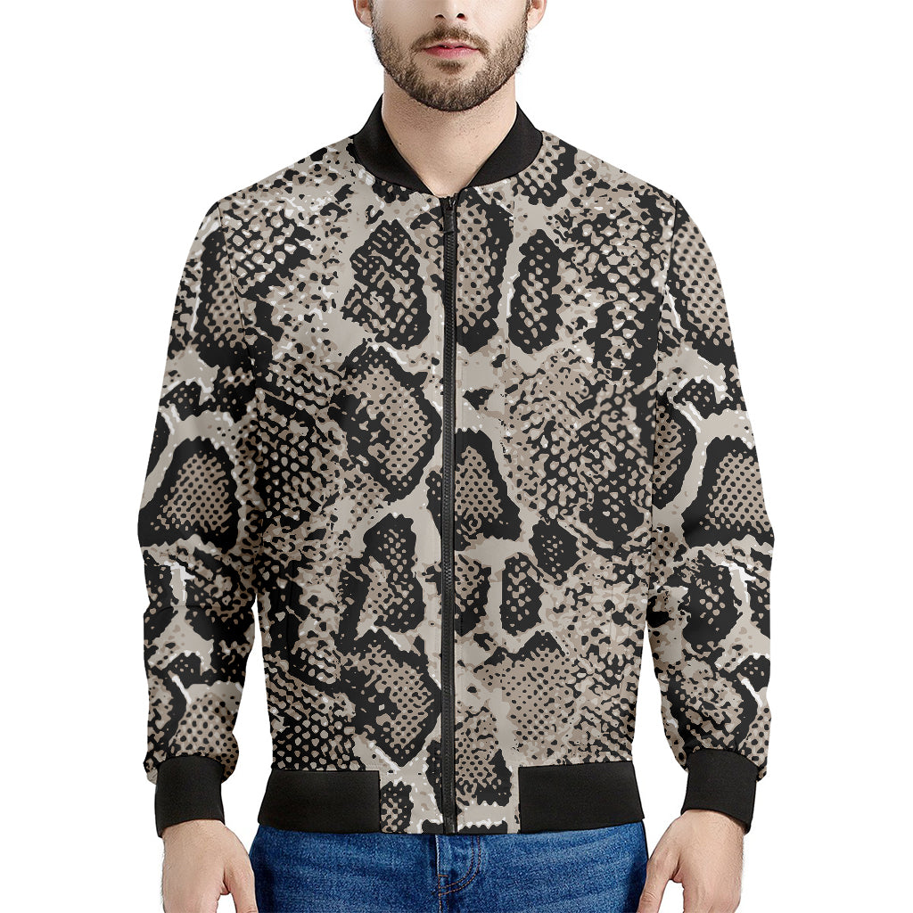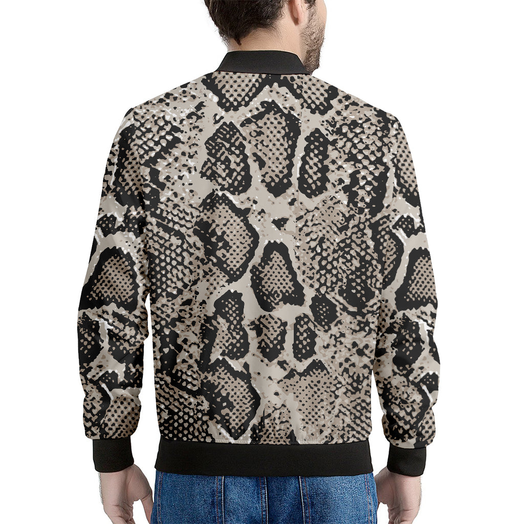 Are you looking for unique bomber jackets? Check our Tan And Black Snakeskin Print Men's Bomber Jacket on GearFrost. Our bomber jackets are handcrafted to the highest quality standards and made-to-order for you!
