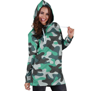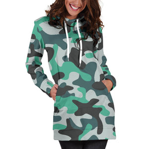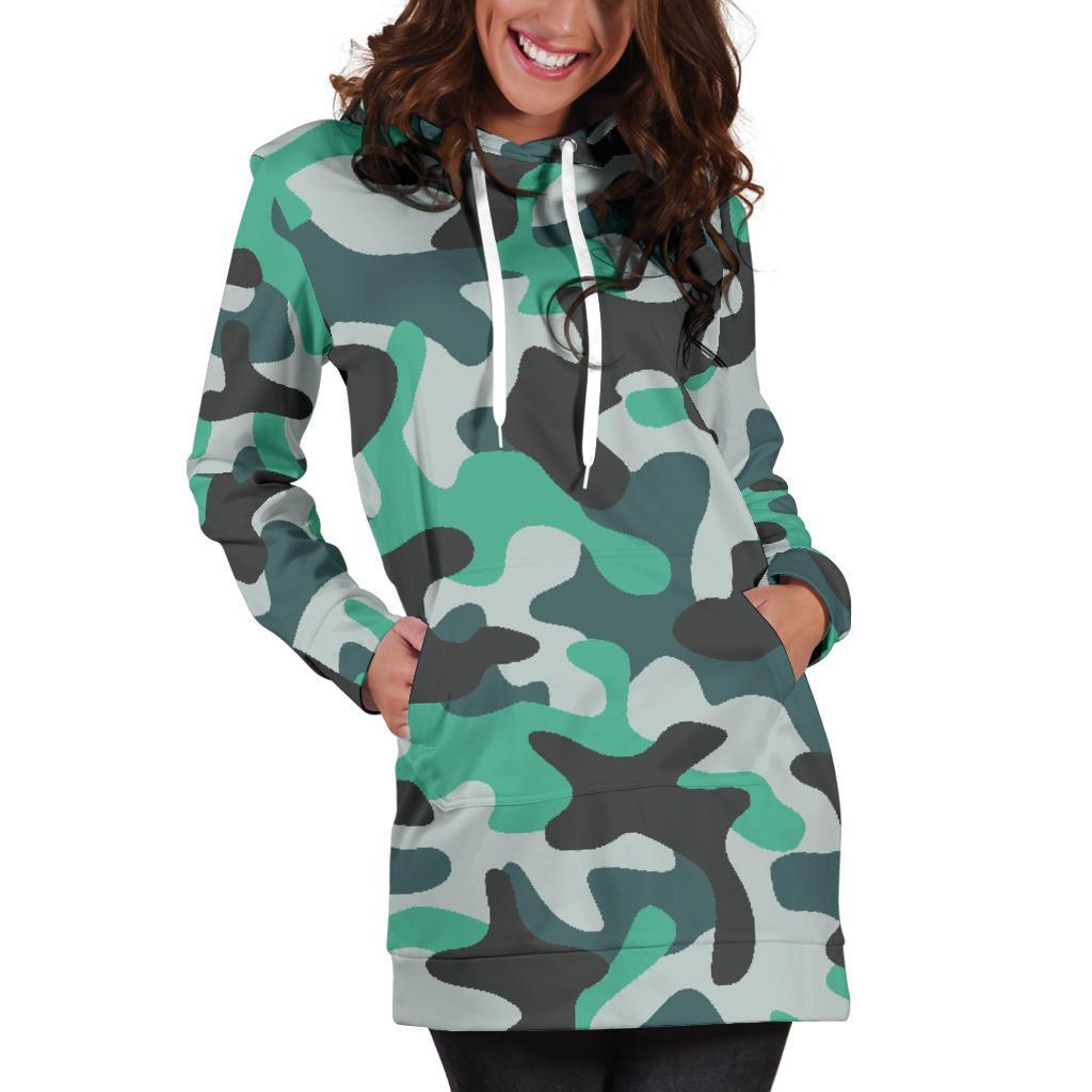 Are you looking for unique hoodie dresses? Check our Teal And Black Camouflage Print Pullover Hoodie Dress on GearFrost. Our hoodie dresses are handcrafted to the highest quality standards and made-to-order for you!