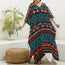 Teal And Brown Aztec Pattern Print Silk V-Neck Kaftan Dress