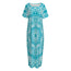 Teal And White Mandala Print Short Sleeve Long Nightdress