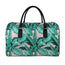 Teal Banana Leaves Pattern Print Leather Duffle Bag