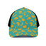Teal Banana Pattern Print Black Mesh Trucker Cap