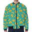 Teal Banana Pattern Print Zip Sleeve Bomber Jacket