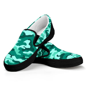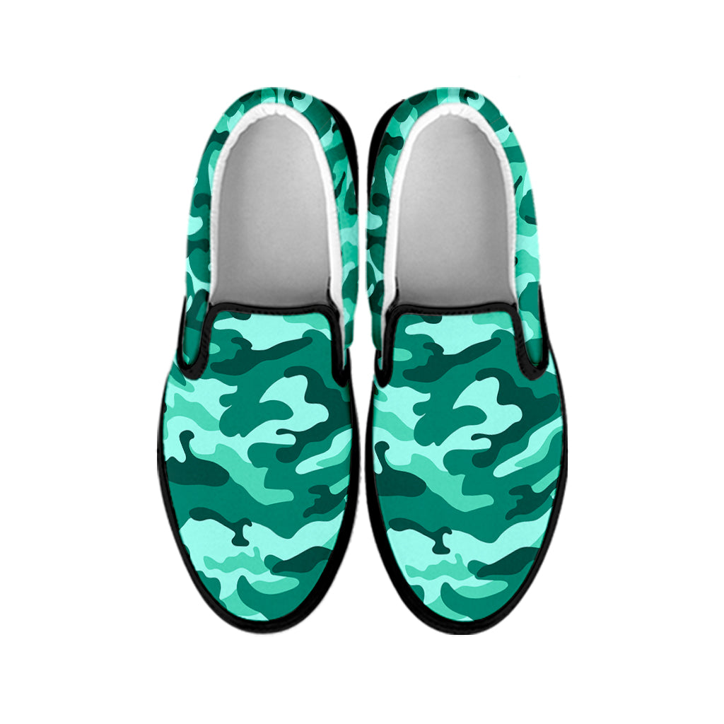 Are you looking for unique sneakers? Check our Teal Camouflage Print Black Slip On Sneakers on GearFrost. Our sneakers are handcrafted to the highest quality standards and made-to-order for you!