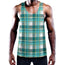 Teal Madras Pattern Print Men's Workout Tank Top