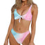 Teal Pink Liquid Marble Print Front Bow Tie Bikini
