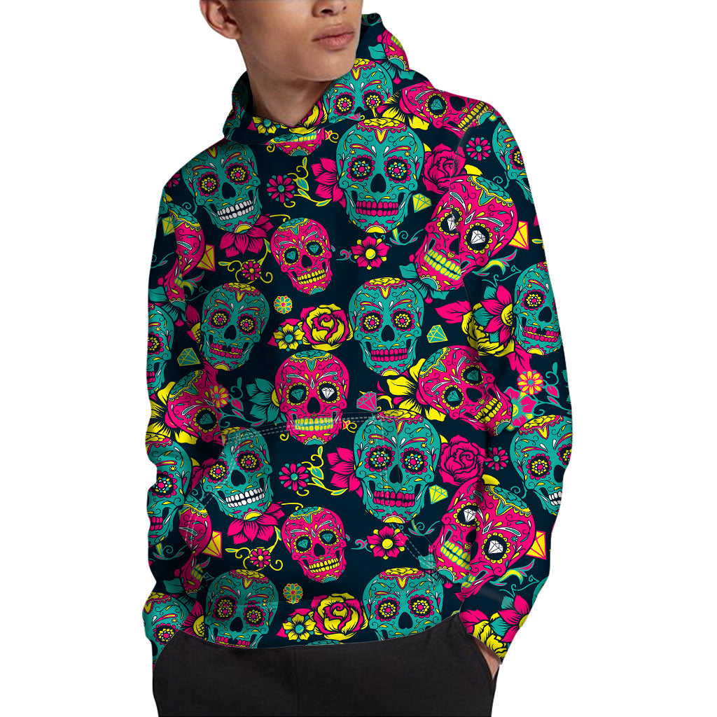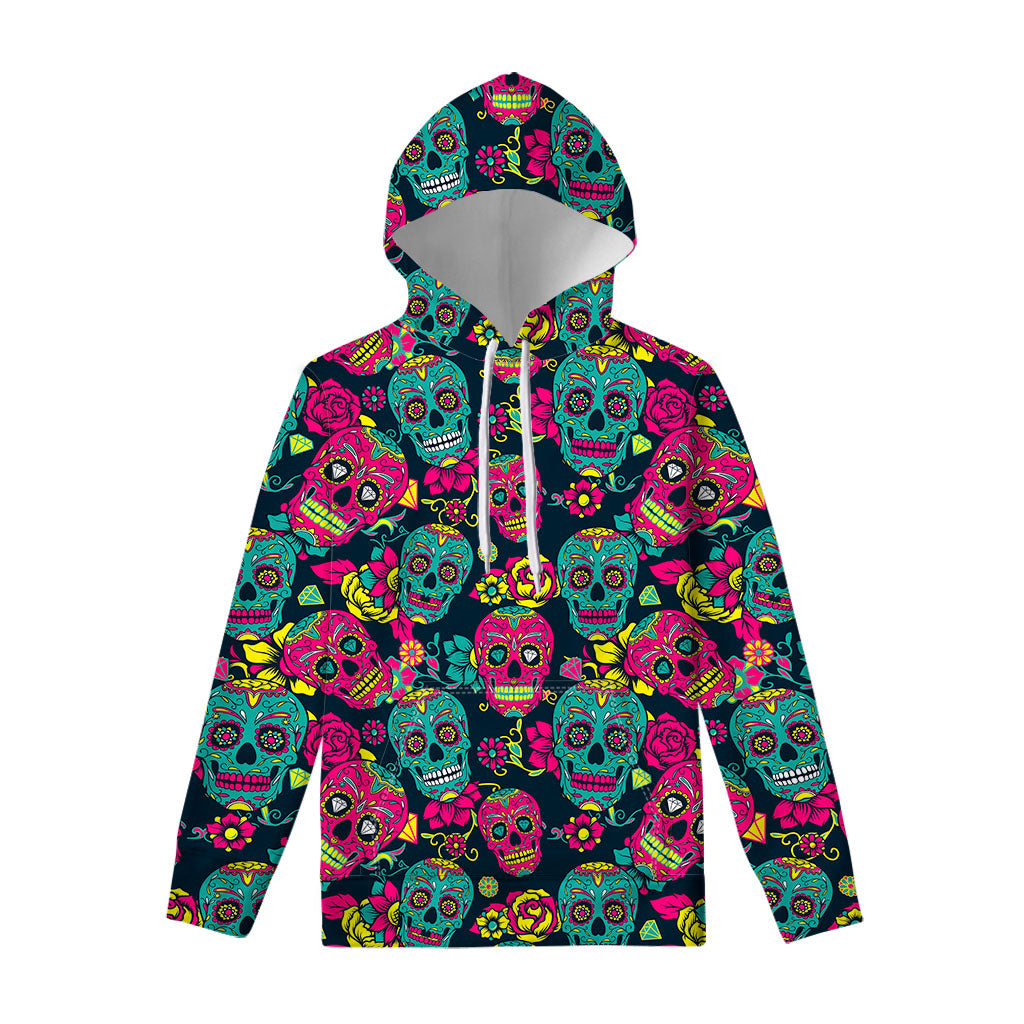 Are you looking for unique hoodies? Check our Teal Pink Sugar Skull Pattern Print Pullover Hoodie on GearFrost. Our hoodies are handcrafted to the highest quality standards and made-to-order for you!