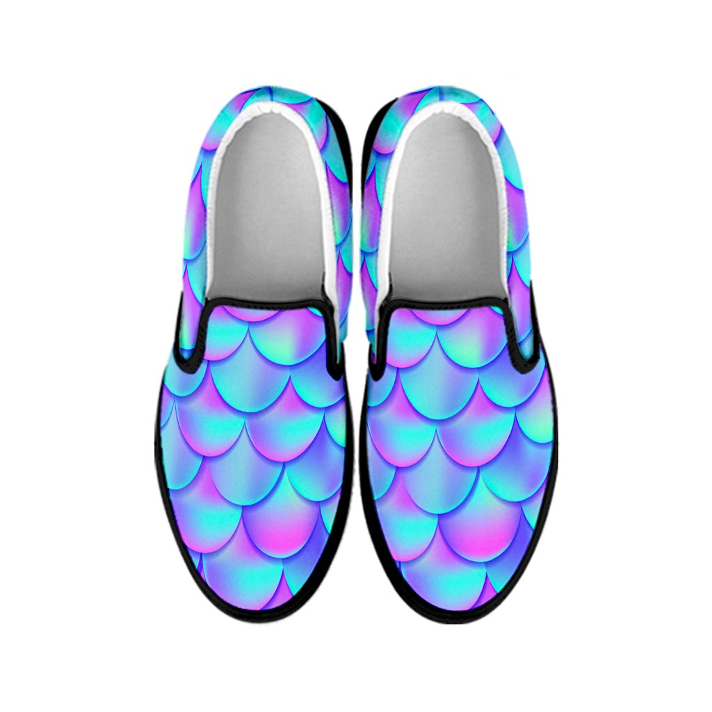 Are you looking for unique sneakers? Check our Teal Purple Mermaid Scales Pattern Print Black Slip On Sneakers on GearFrost. Our sneakers are handcrafted to the highest quality standards and made-to-order for you!