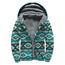 Teal Southwestern Navajo Pattern Print Sherpa Lined Zip Up Hoodie
