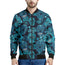 Teal Sugar Skull Flower Pattern Print Men's Bomber Jacket