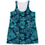 Teal Sugar Skull Flower Pattern Print Women's Racerback Tank Top
