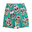 Teal Sugar Skull Pattern Print Cotton Shorts