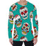 Teal Sugar Skull Pattern Print Men's Long Sleeve T-Shirt