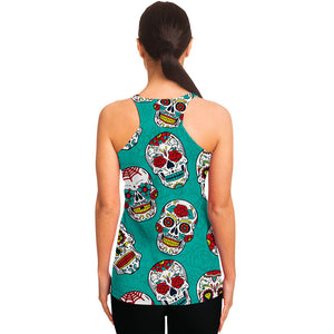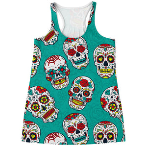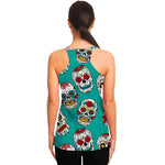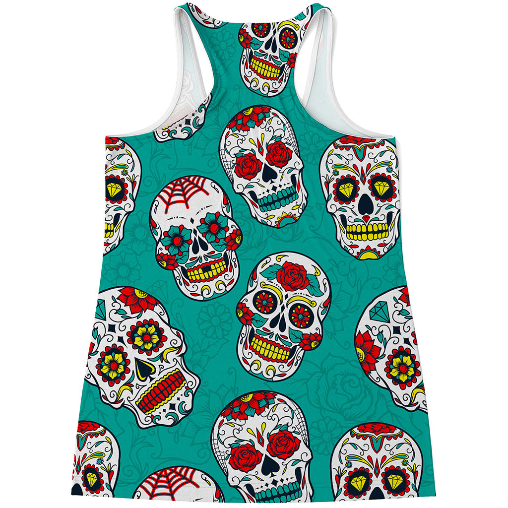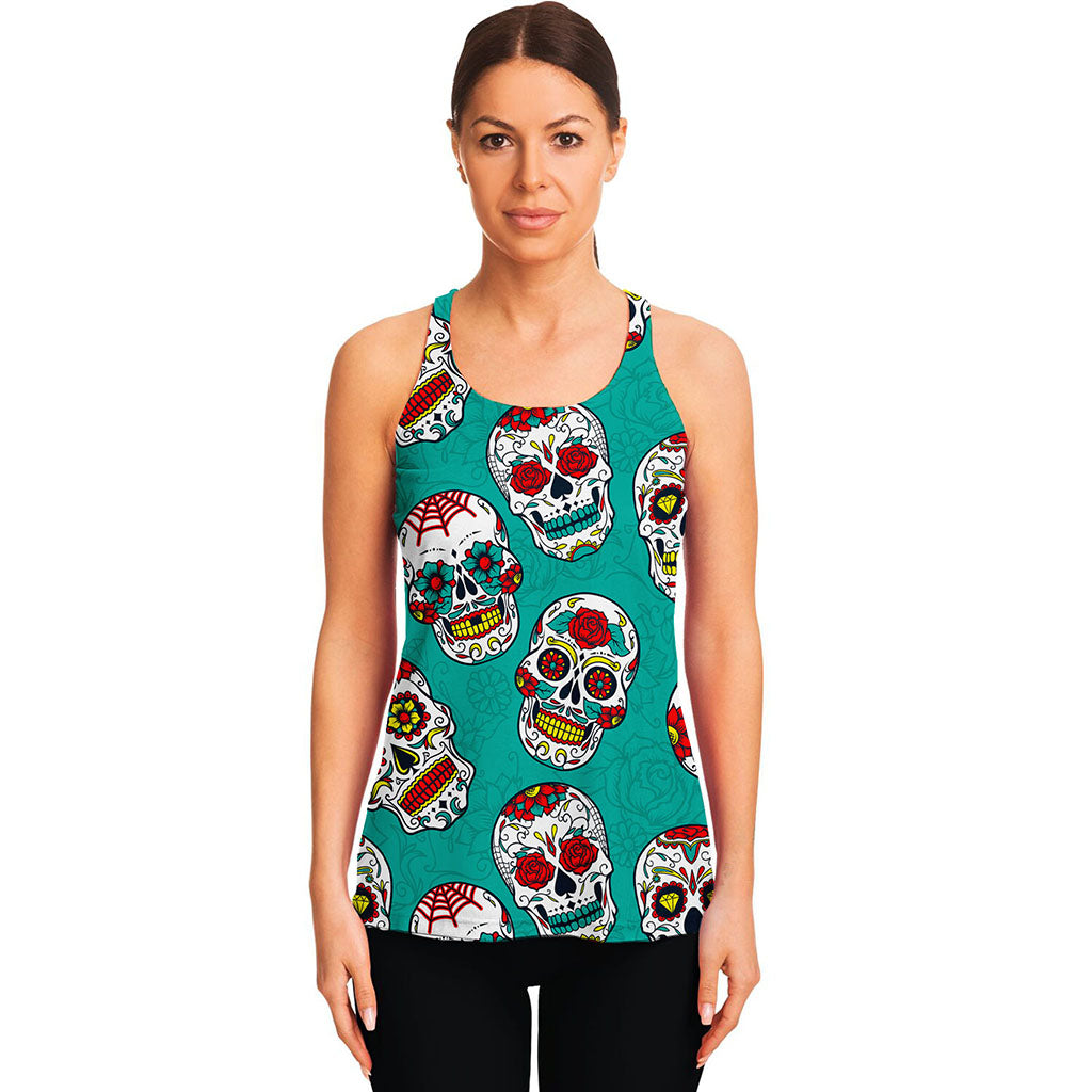 Stay cool and stylish with the versatile Teal Sugar Skull Pattern Print Women's Racerback Tank Top. Designed for women who prioritize comfort and functionality, this racerback tank top is the perfect addition to your active and casual wardrobe. Whether you’re working out, running errands, or relaxing at home, this tank top offers a sleek and flattering fit that keeps you looking great and feeling confident.