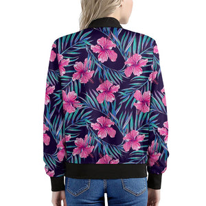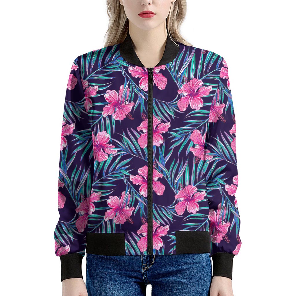 Make a bold statement with the sleek and stylish Teal Tropical Hibiscus Pattern Print Women's Bomber Jacket. This women's bomber jacket combines a classic silhouette with modern design, offering the perfect mix of fashion and functionality. Whether you're layering it for a chilly day or adding a finishing touch to your outfit, this jacket is designed to keep you comfortable while elevating your style.