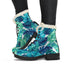 Teal Tropical Leaf Pattern Print Comfy Boots GearFrost
