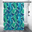 Teal Tropical Leaf Pattern Print Premium Shower Curtain