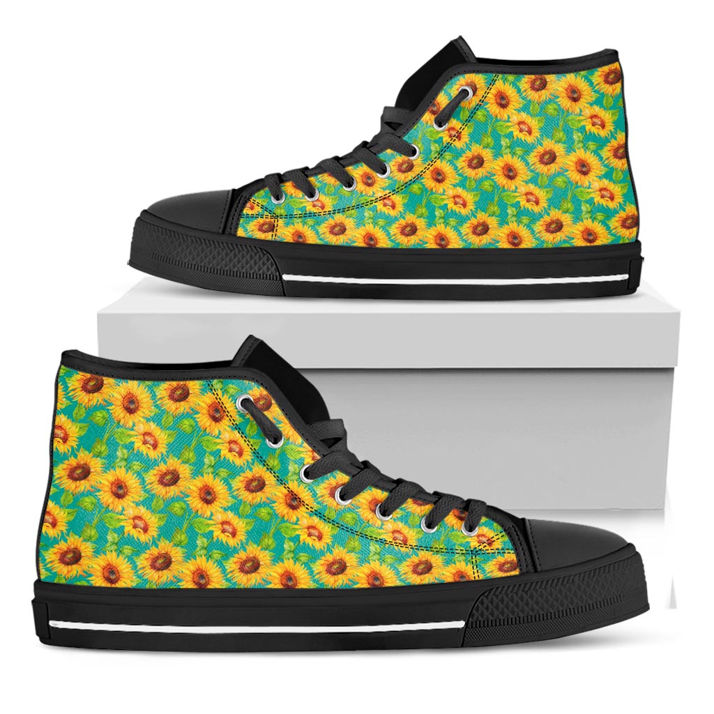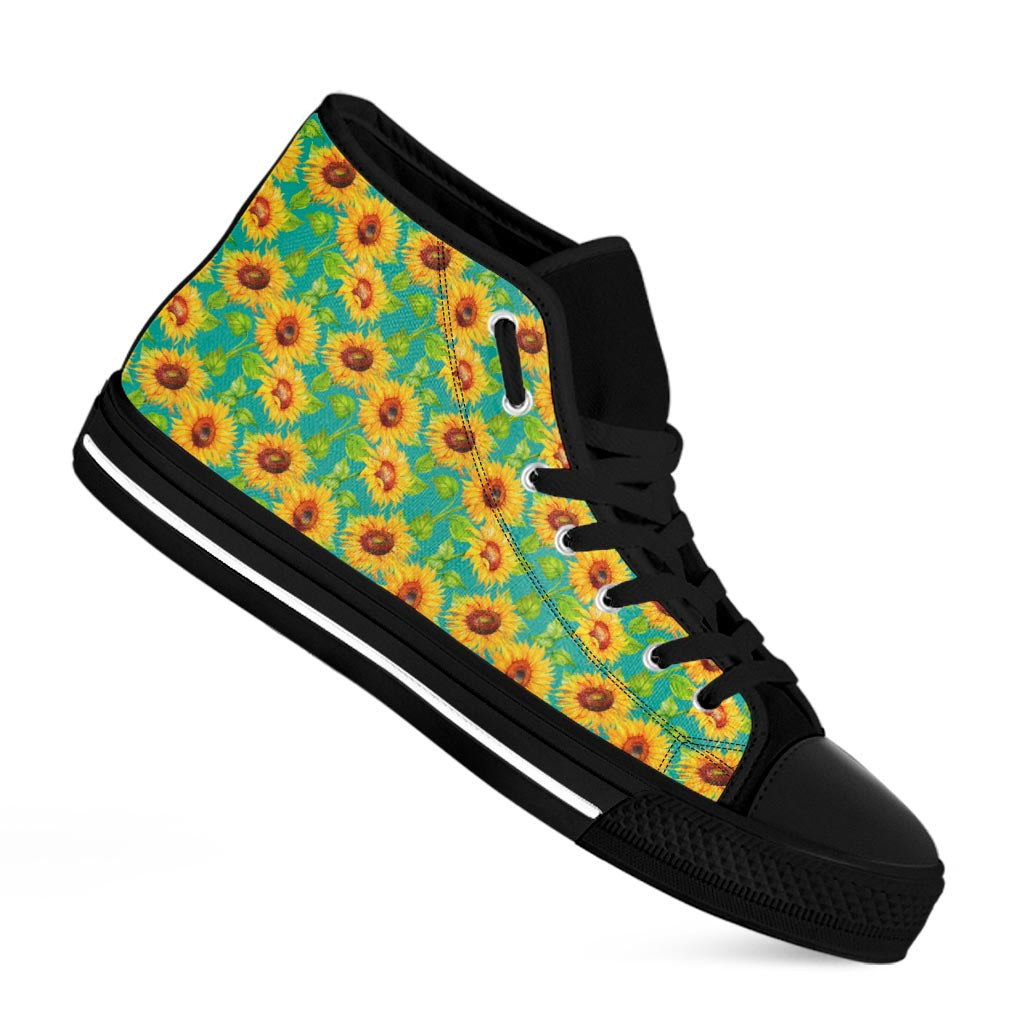 Are you looking for unique sneakers? Check our Teal Watercolor Sunflower Pattern Print Black High Top Sneakers on GearFrost. Our sneakers are handcrafted to the highest quality standards and made-to-order for you!