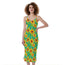 Teal Watercolor Sunflower Pattern Print Slim Fit Midi Cami Dress