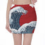 The Great Kanagawa Wave Print Pencil Mini Skirt