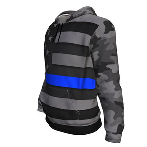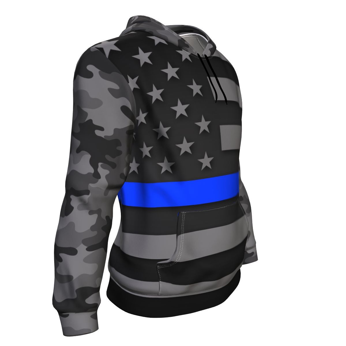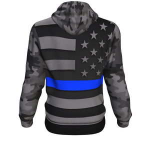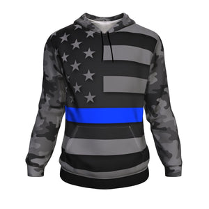 Stay cozy and stylish with the versatile Thin Blue Line Camo Pullover Hoodie. This pullover hoodie combines exceptional comfort with eye-catching design, making it a standout choice for casual wear, lounging, or layering. With its flawless construction and bold graphics, this hoodie is designed to elevate your everyday look while keeping you warm and comfortable.