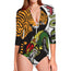Tiger And Dragon Yin Yang Print Long Sleeve Swimsuit