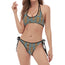 Black And White Mechanic Pattern Print Halter Scoop Tie Side Bikini