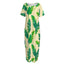 Tropical Banana Palm Leaf Pattern Print Short Sleeve Long Nightdress
