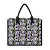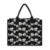 Black And White Cattleya Pattern Print Canvas Tote Bag