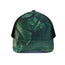 Turquoise Leaf Print Black Mesh Trucker Hat