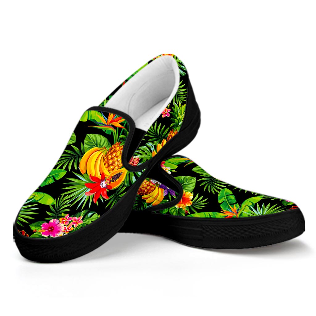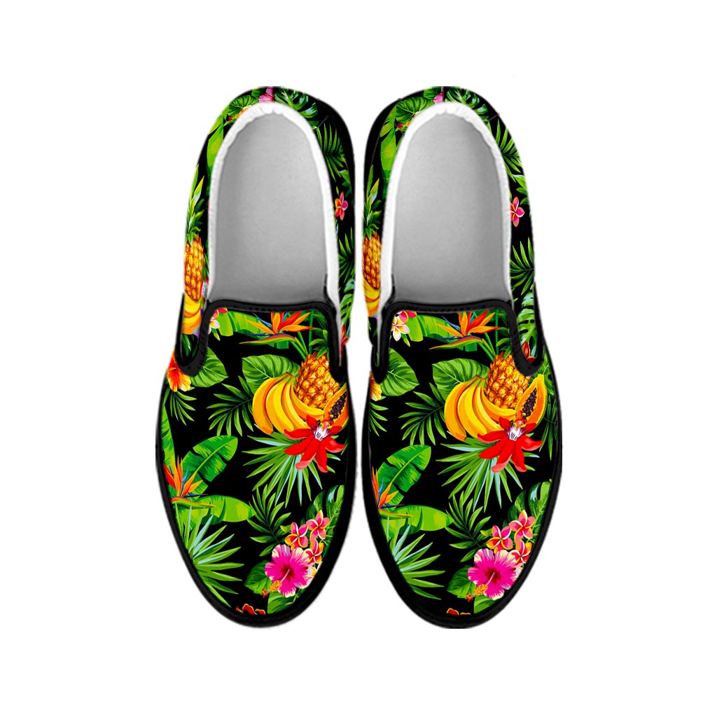 Are you looking for unique sneakers? Check our Tropical Hawaiian Fruits Pattern Print Black Slip On Sneakers on GearFrost. Our sneakers are handcrafted to the highest quality standards and made-to-order for you!