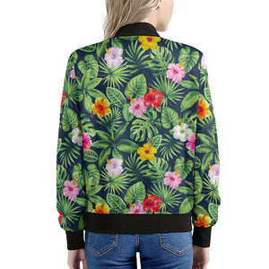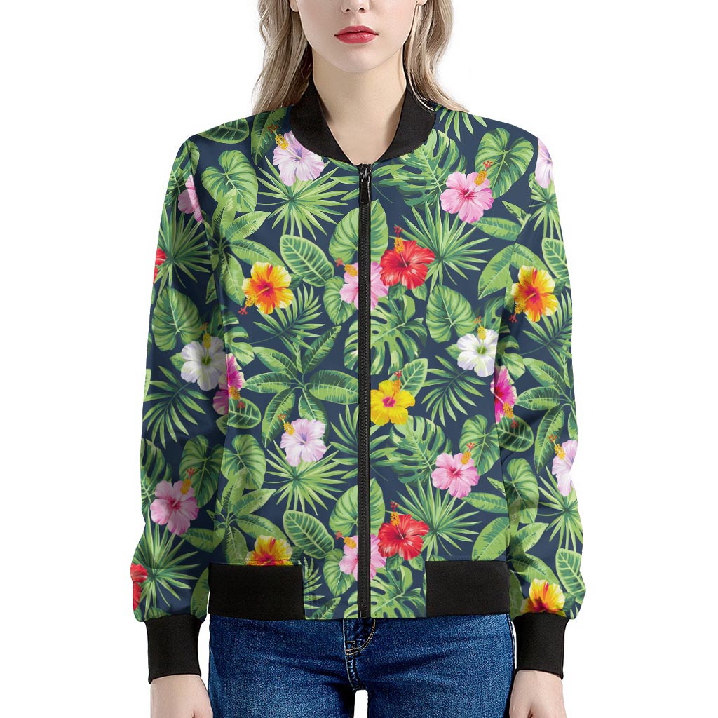 Make a bold statement with the sleek and stylish Tropical Hibiscus Flowers Pattern Print Women's Bomber Jacket. This women's bomber jacket combines a classic silhouette with modern design, offering the perfect mix of fashion and functionality. Whether you're layering it for a chilly day or adding a finishing touch to your outfit, this jacket is designed to keep you comfortable while elevating your style.
