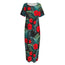 Tropical Hibiscus Leaves Pattern Print Short Sleeve Long Nightdress