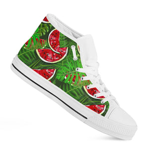 Are you looking for unique sneakers? Check our Tropical Leaf Watermelon Pattern Print White High Top Sneakers on GearFrost. Our sneakers are handcrafted to the highest quality standards and made-to-order for you!