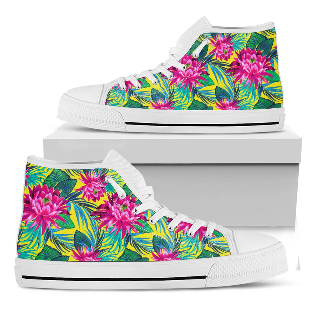 Are you looking for unique sneakers? Check our Tropical Lotus Pattern Print White High Top Sneakers on GearFrost. Our sneakers are handcrafted to the highest quality standards and made-to-order for you!