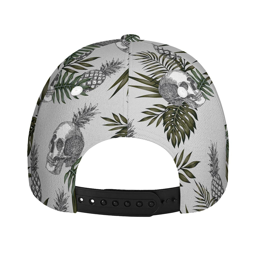 Top off your look with the stylish and functional Tropical Pineapple Skull Pattern Print Baseball Cap. Designed for comfort and durability, this baseball cap is the perfect accessory for casual outings, outdoor activities, or simply elevating your everyday style. Its sleek design and practical features make it a wardrobe essential for anyone who values both form and function.