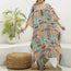 Tropical Tiki Pattern Print Silk V-Neck Kaftan Dress