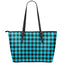 Turquoise And Black Buffalo Check Print Leather Tote Bag